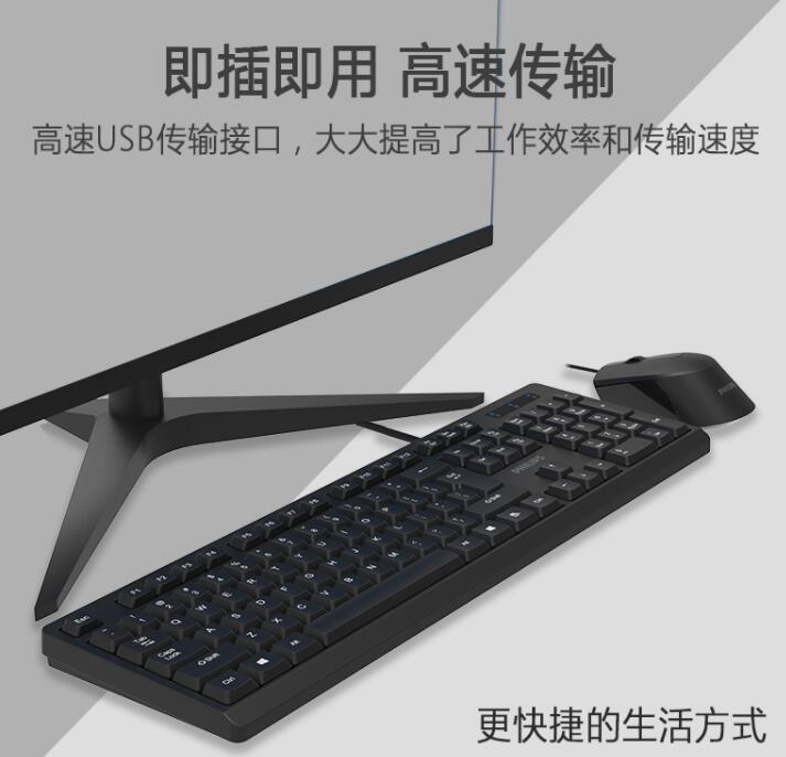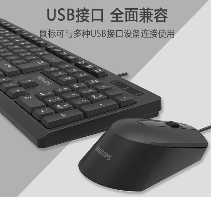 飛利浦SPT6234有線辦公鍵鼠套裝 筆記本臺式電腦USB商務鍵盤鼠標