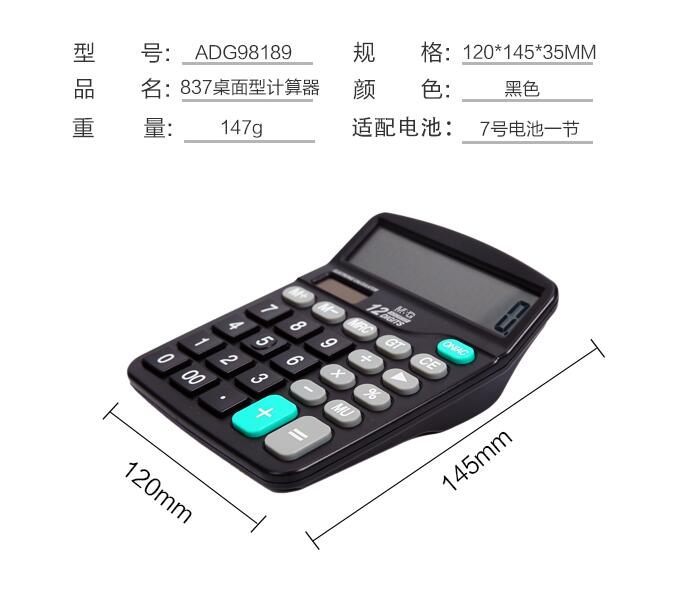 晨光文具837太陽(yáng)能計(jì)算器商務(wù)型辦公用會(huì)計(jì)專(zhuān)用科學(xué)商用學(xué)生考試大屏大按鍵計(jì)算機(jī)大號(hào)小號(hào)便攜雙電源
