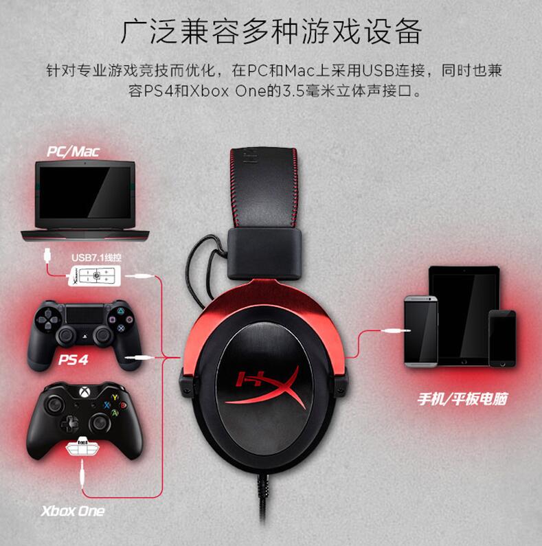 金士頓HyperX Cloud II颶風(fēng)2 頭戴式電競游戲耳機7.1有線吃雞耳麥